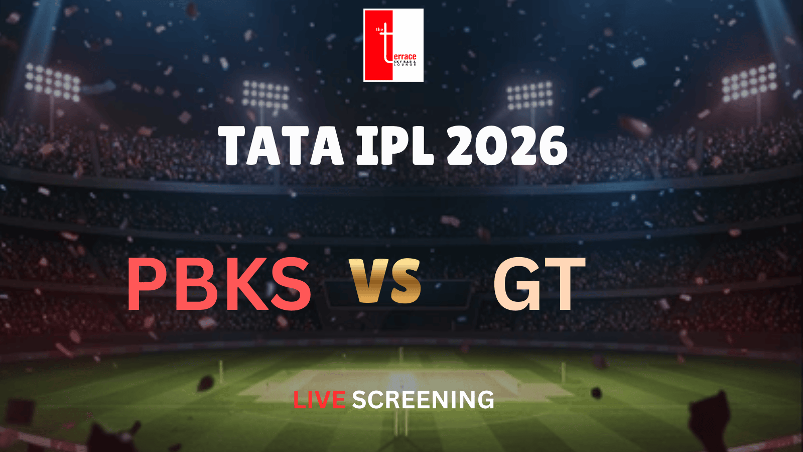 Get ready for an action-packed IPL showdown as Punjab Kings take on Gujarat Titans live on the big screen at The Terrace during the exciting Indian Premier League 2026 season.