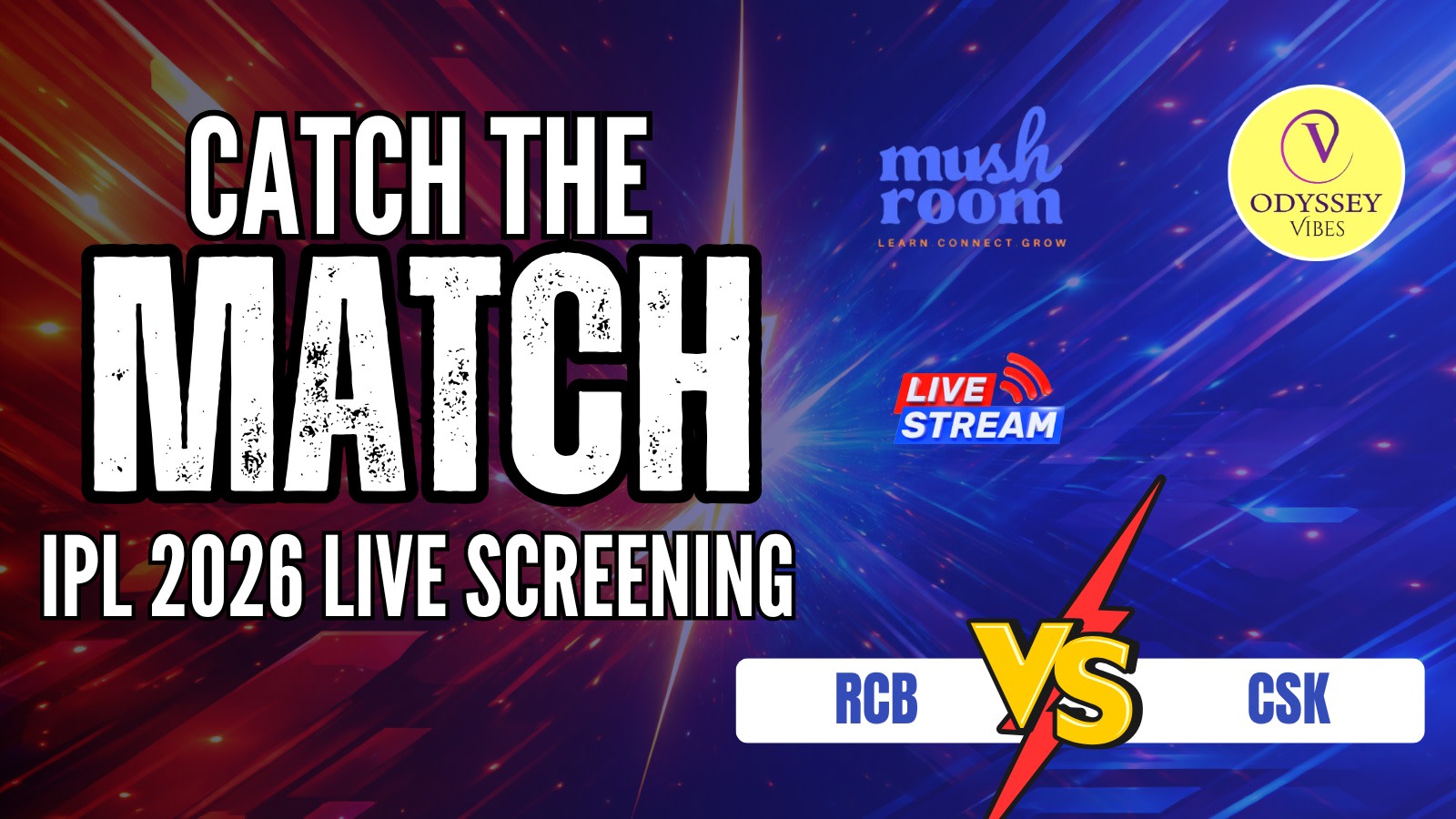 Experience the electrifying opening screenings of RCB vs CSK with cozy seating, warm snacks, soft drinks and refreshing tea and coffee.