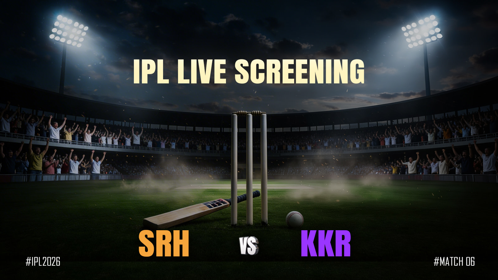 Catch the thrilling IPL clash as Sunrisers Hyderabad take on Kolkata Knight Riders. Enjoy every moment of the action on big screens. Feel the energy build with every boundary, wicket, and game-changing over in a vibrant, high-spirited atmosphere. Pair the excitement with great food, signature drinks, and the company of passionate cricket fans. Whether you're cheering for SRH or backing KKR, the adrenaline is guaranteed till the final ball. Gather your crew and get ready for a night full of cricket, cheers, and unforgettable vibes.