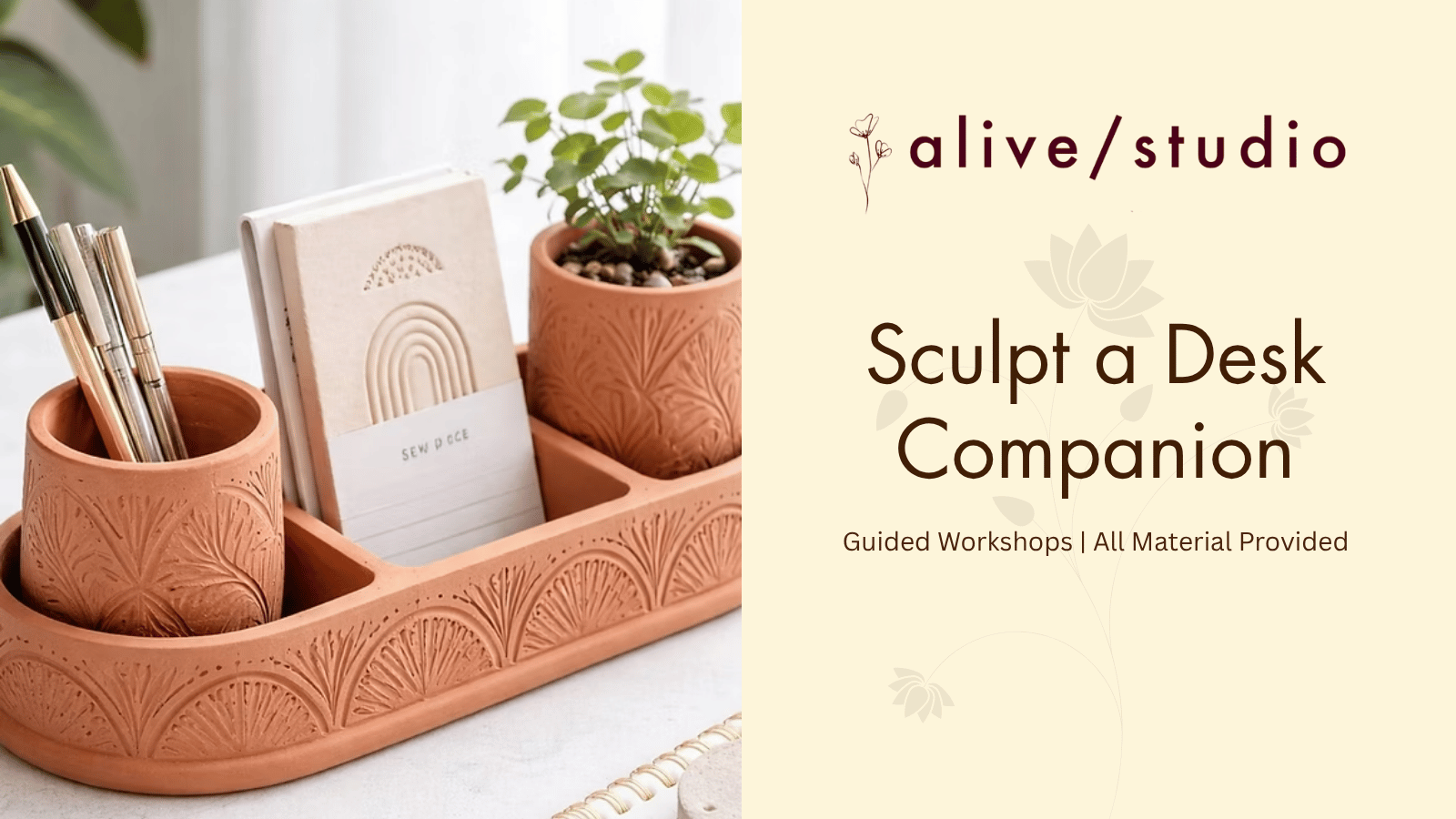 Sculpt your own terracotta desk companion - an earthy, functional piece designed and made by you.