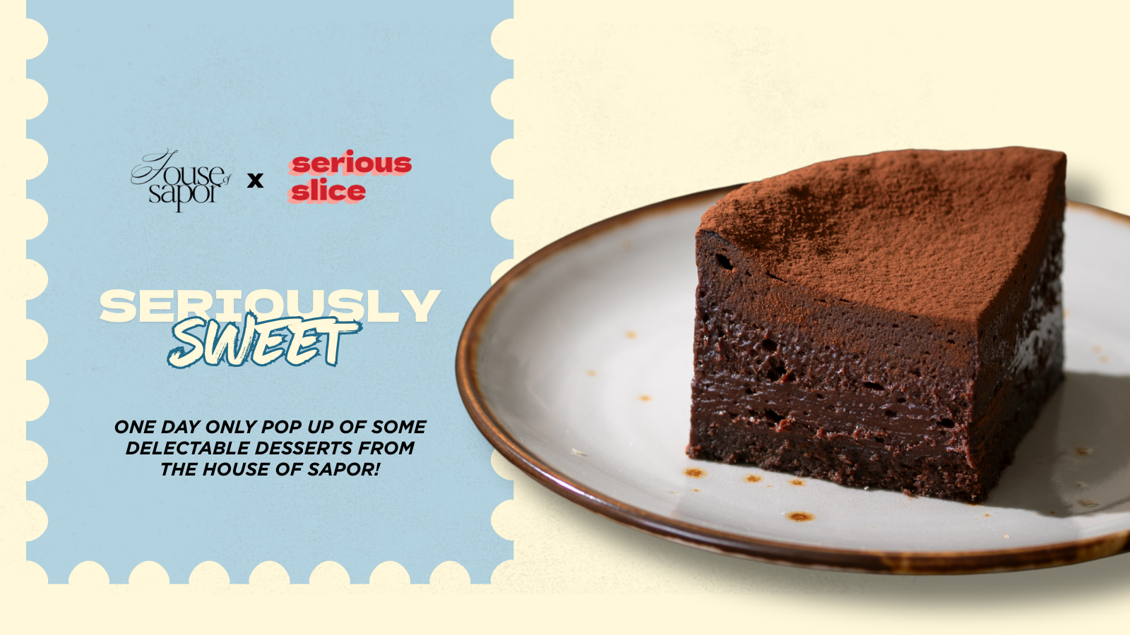 For one day only, House of Sapor brings three of their creations to Serious Slice. Thoughtful, balanced, and made to make you pause. Come for a serious slice & stay for something seriously sweet!