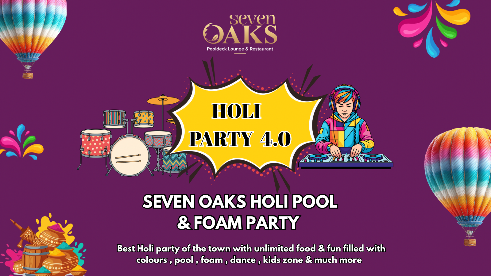 Celebrate Holi like never before at Seven Oaks with a premium foam & pool party experience filled with music, colors and unlimited indulgence.