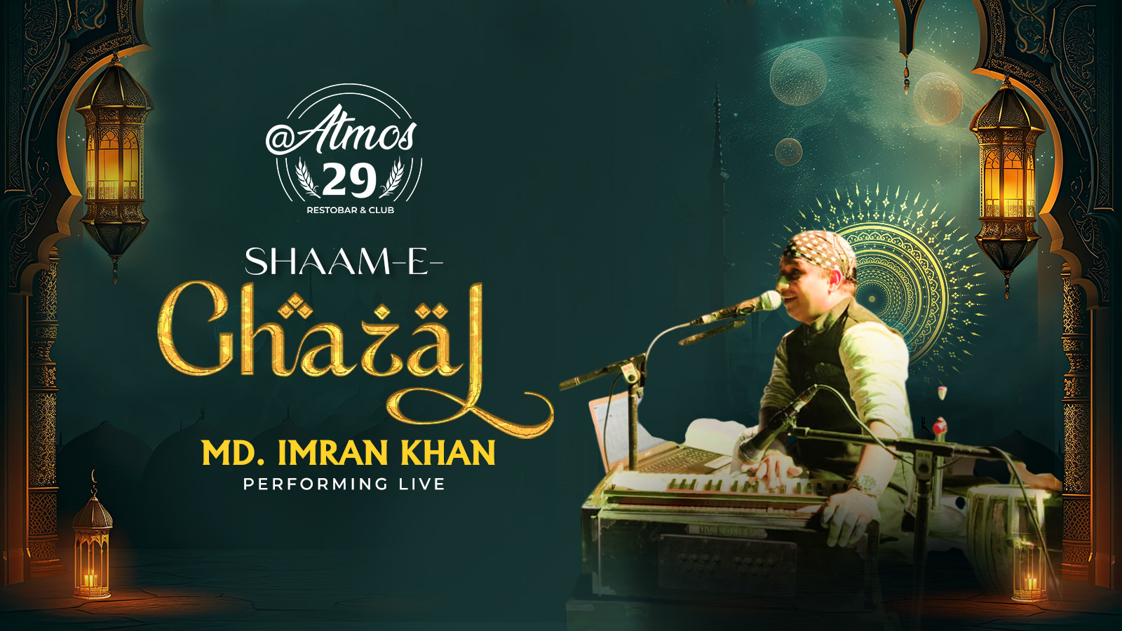 Experience an unforgettable evening of soulful Ghazals, delicious food, and premium drinks in a magical ambiance. 🌙