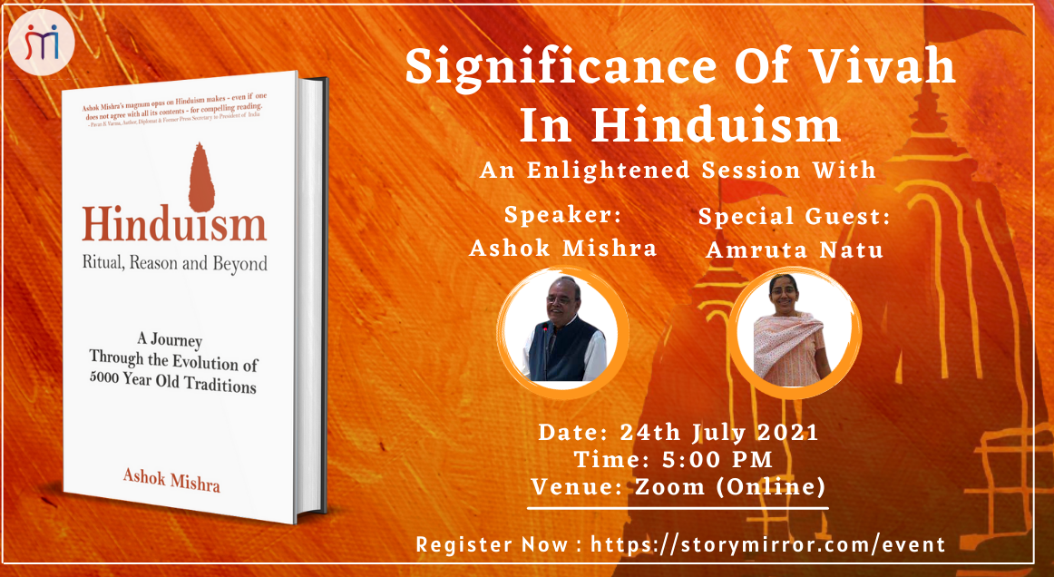 On 24th July, StoryMirror will be hosting a fireside conversation on the concept of 'Vivaah' under the guidance of Ashok Mishra - a research scholar and best-selling author. His Book 'Hinduism - Ritual, Reason and Beyond' has been adjudged as the Top 7 best Hinduism books to read in 2021 by "BookAuthority", where thought leaders and experts from CNN, Forbes, Inc and many journals select this among good books.
