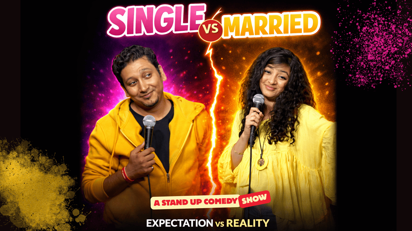 This laugh-packed stand-up show dives into the real differences between being single and married—freedom, fights, romance, relatives, and those classic “how is this my fault?” moments.