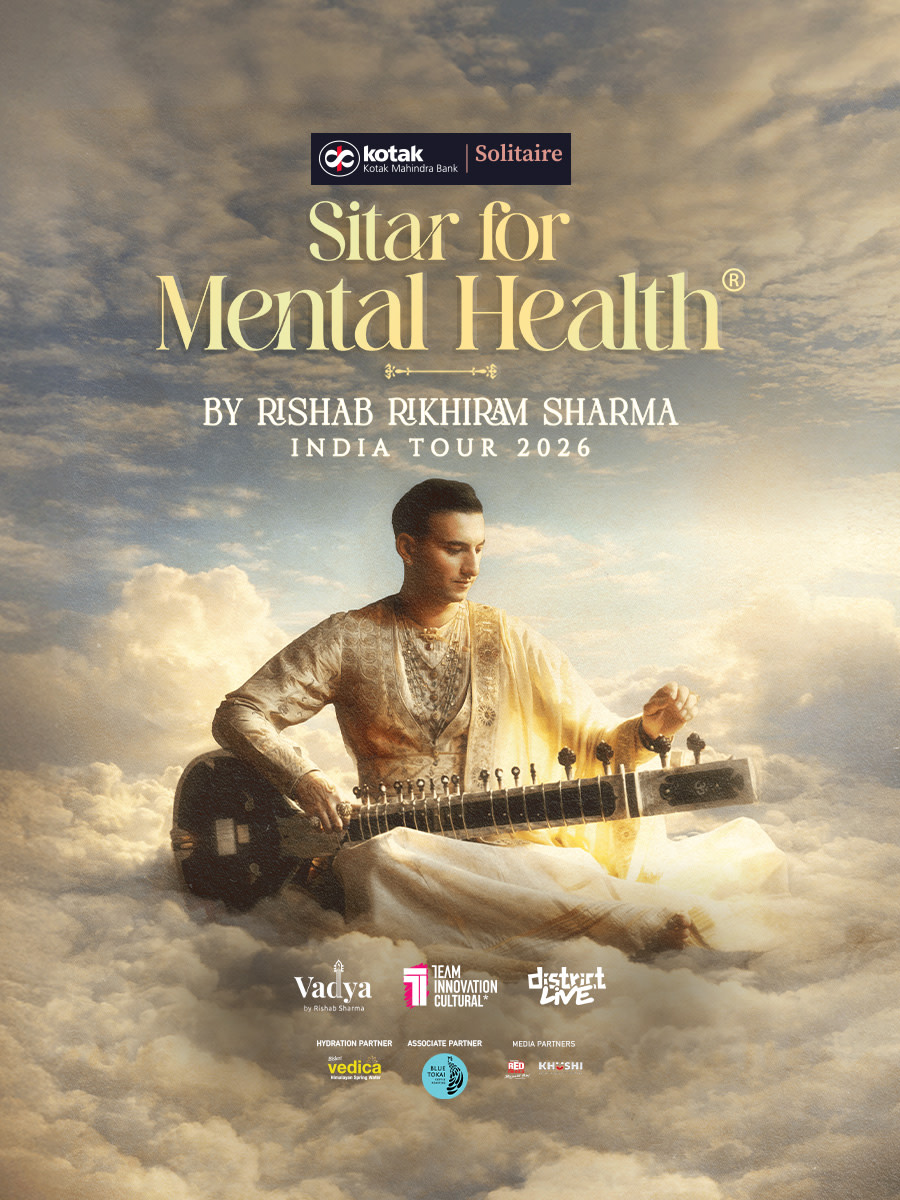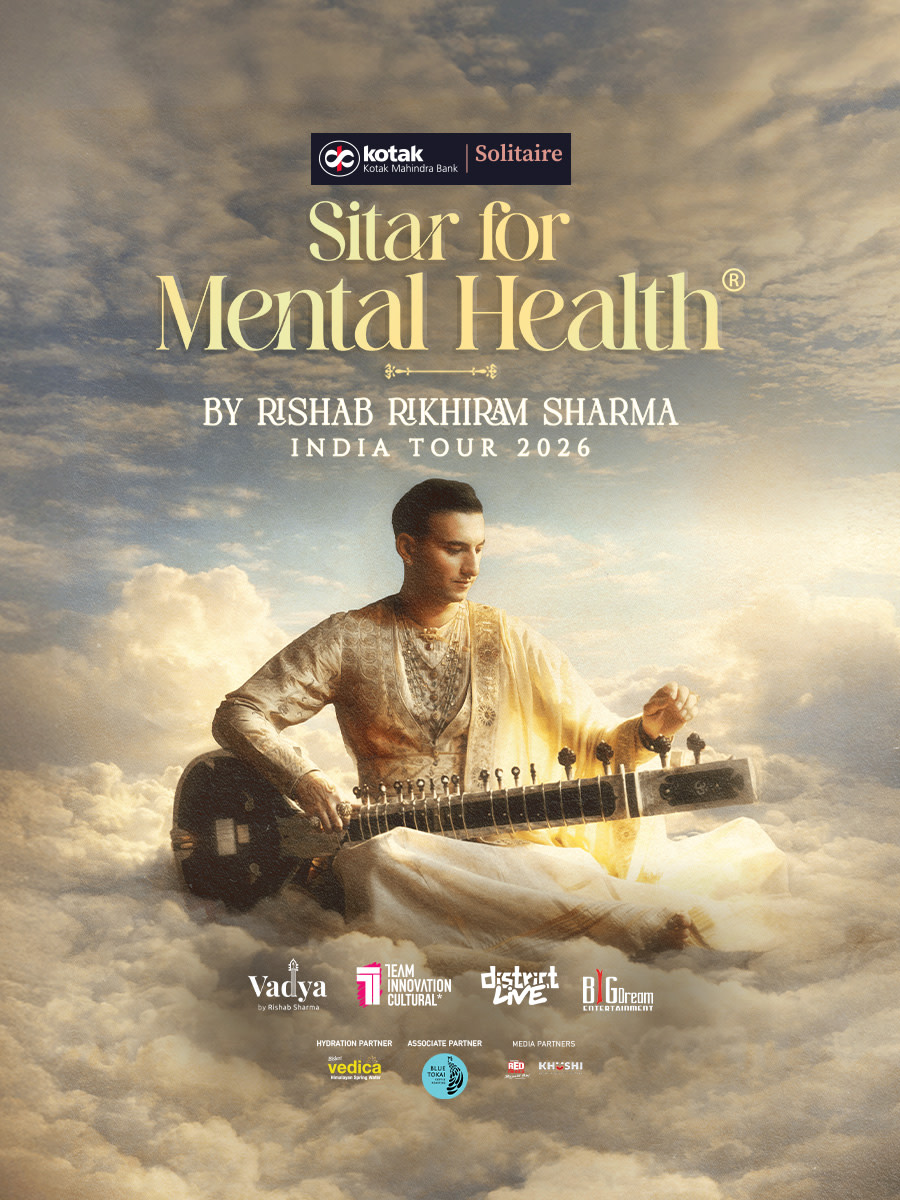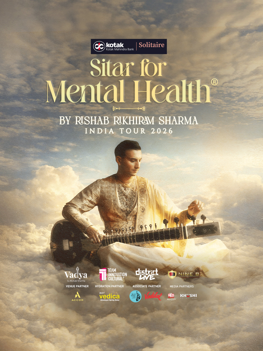 Rishab Rikhiram Sharma presents Sitar for Mental Health, a unique experience designed for relaxation and inner peace. Drawing from centuries of classical tradition while embracing innovation, the sitar's ancient sound is blended with modern electronic elements. With powerful soundscapes like Chanakya, The Burning Ghat, and Roslyn, Rishab guides the audience through a meditative journey.