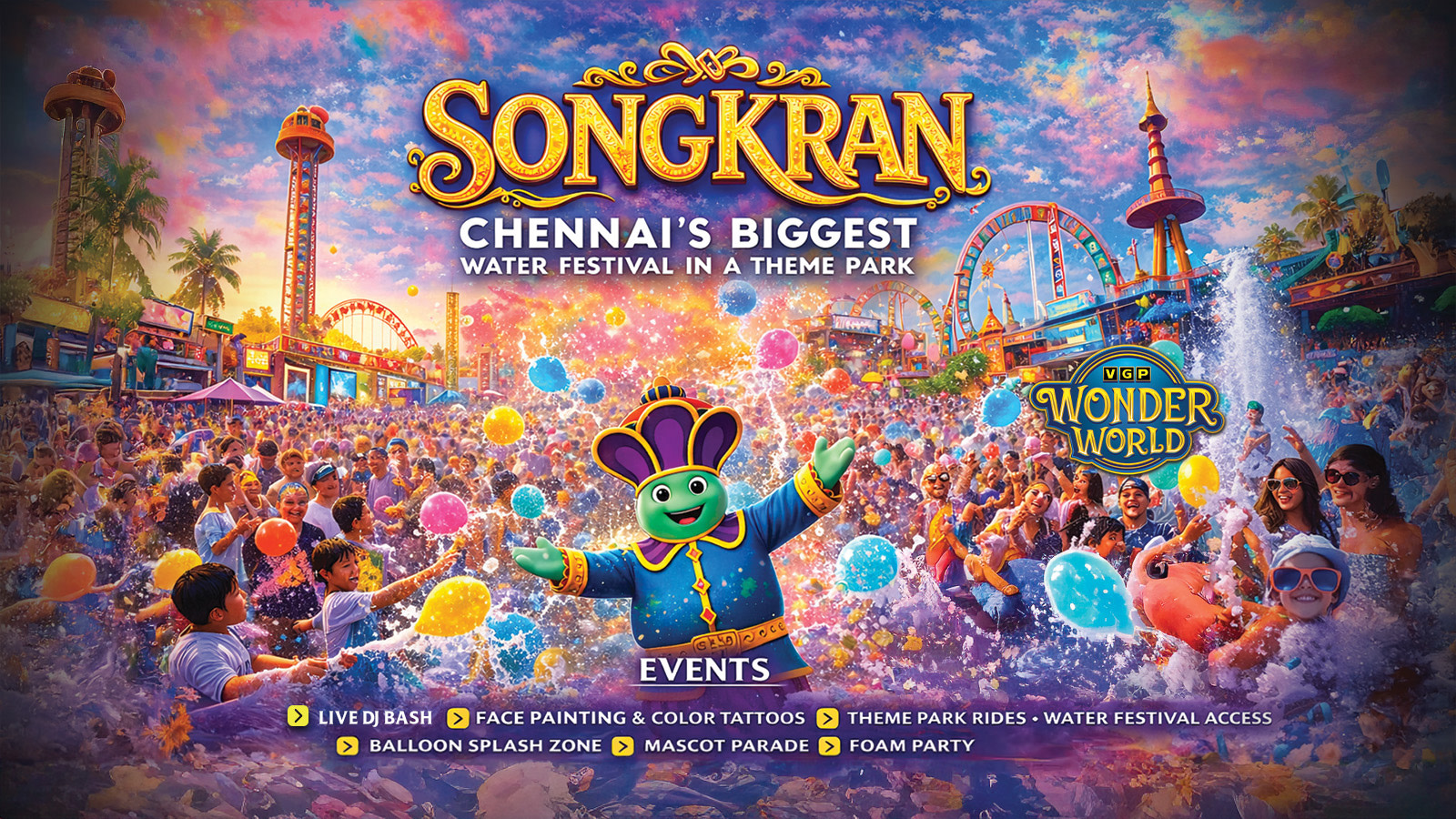 Get ready for SongKran – Chennai’s Biggest Water Festival in a Theme Park, a vibrant celebration filled with music, water fun, and exciting attractions for all ages.