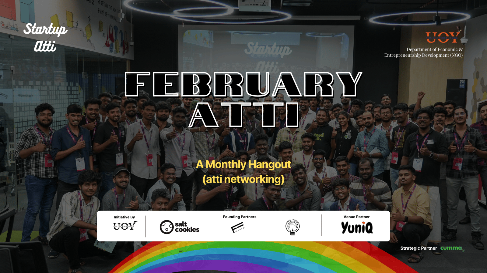 Startup Atti is an initiative by the Department of Economic and Entrepreneurship Development, Unity of Youth Foundation. Designed to bring start-ups and like-minded individuals together for meaningful offline networking.