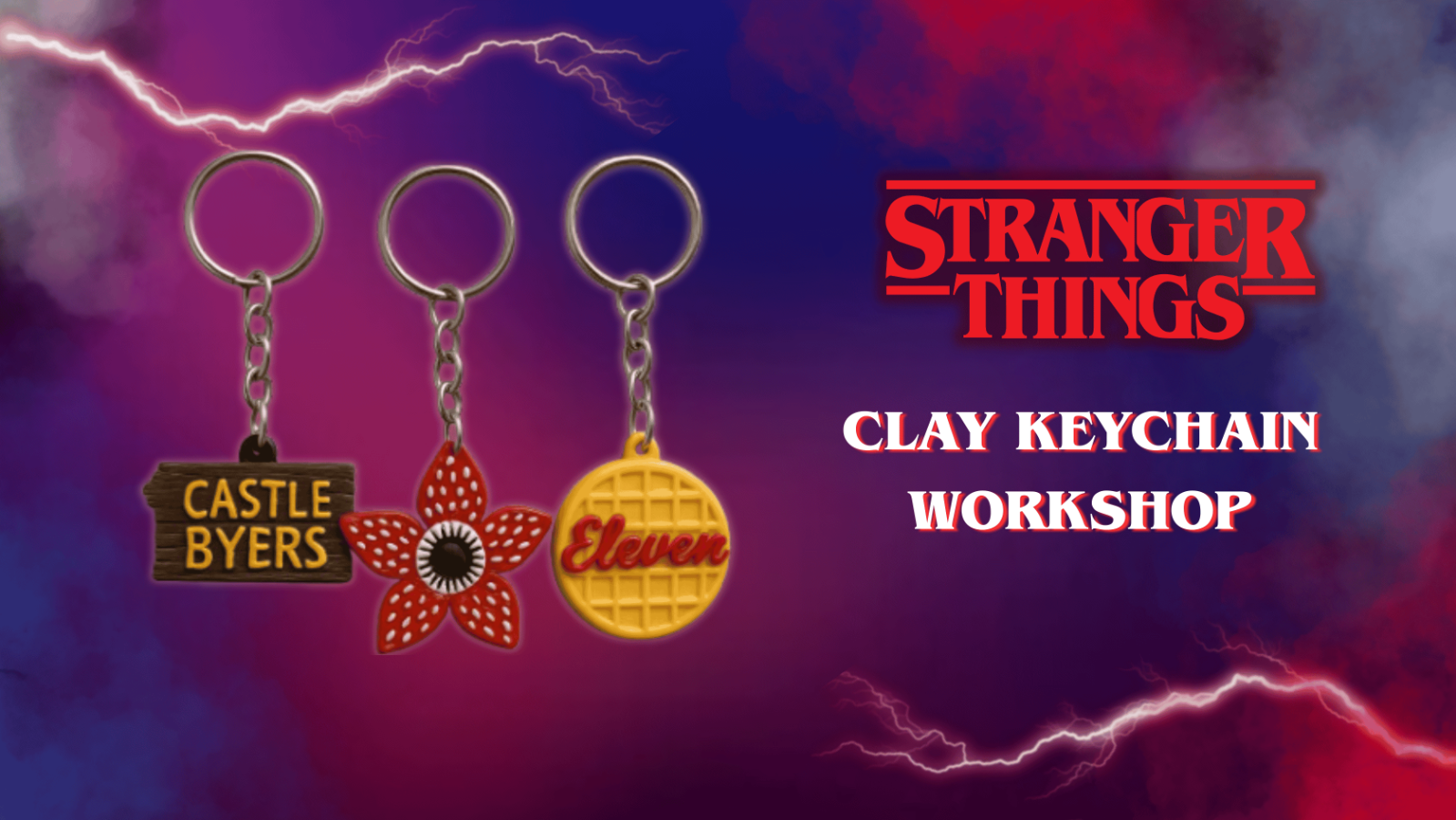 Join us for a Stranger Things Clay Keychain Workshop, where fans get to sculpt, carve, and detail their favorite symbols from the Upside Down and beyond. From Eleven’s Eggos and Dustin’s cap to Walkman tapes, alphabet lights, mini Demogorgon silhouettes, and other iconic elements, you will turn them into adorable keychains you can carry everywhere.