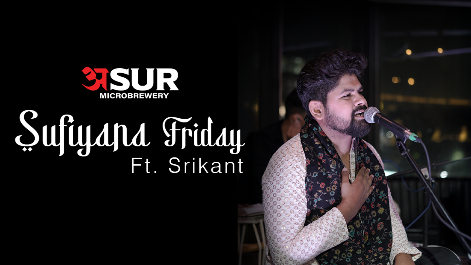Experience a soulful Sufiyana Friday Ft. Srikant. Heartfelt Sufi melodies, a serene ambiance, fresh beer, and delicious food for a truly calming Friday evening.