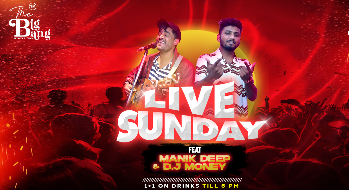 End Your Weekend on a High Note at Big Bang Sky Deck! Join us this Sunday for a soulful evening of Live Music featuring the incredible DJ Manik Deep and DJ Money! Let the soothing Live Music set the tone for a relaxing Sunday evening as you unwind and enjoy the majestic city views.