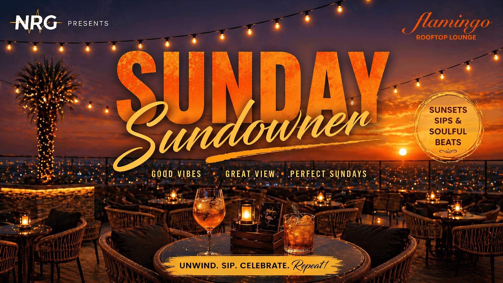 Sunday Sundowner brings together stunning sunset views, laid-back vibes, and the perfect soundtrack of soulful beats to set the mood. Sip on handcrafted cocktails, unwind in a cozy rooftop setting, and let the city lights take over as the evening unfolds.