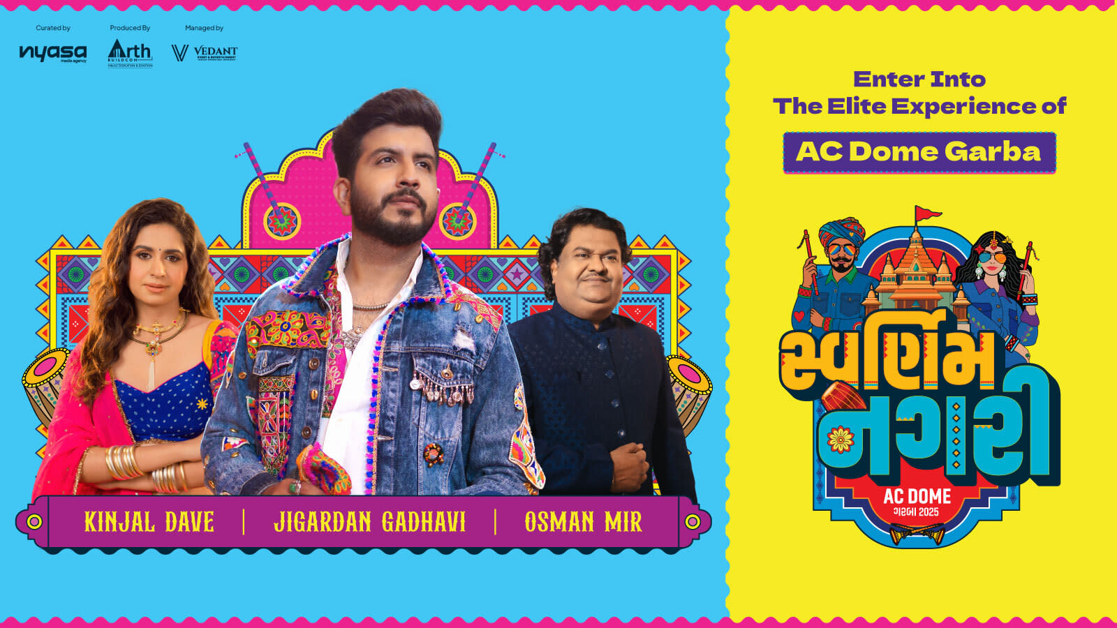 Get ready to experience the grandest and most awaited AC Dome Navratri celebration in Ahmedabad like never before. Swarnim Nagari Navratri Garba passes are live, bringing you a premium Garba event packed with rich tradition, dazzling glamour, and nonstop festive energy - all set within one magnificent, fully air-conditioned dome designed for comfort and class, with live performances by top artists and accompanied by stunning Dwarka-inspired Indian decor that captures the soul of Gujarat.