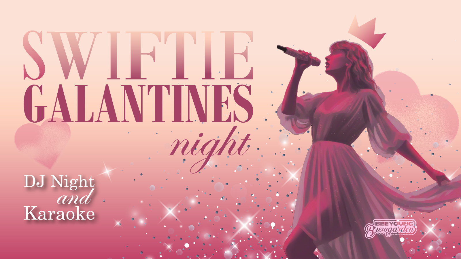 Swiftie Galentine’s Night at Beeyoung Brewgarden is a fun-filled evening of DJ beats + Swiftie & Bieber bangers + karaoke moments you’ll never forget. Whether you’re living your Lover era or screaming Reputation with your besties, this night is all about celebrating friendship, music, and main character energy.