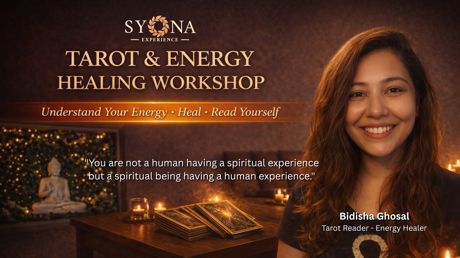 The Tarot & Energy Healing Workshop at Syona Experience is a guided session that blends intuitive tarot understanding with practical energy awareness. Whether you are new to spirituality or already exploring it, this experience is designed to help you gain clarity, balance your energy, and better understand your emotional patterns.