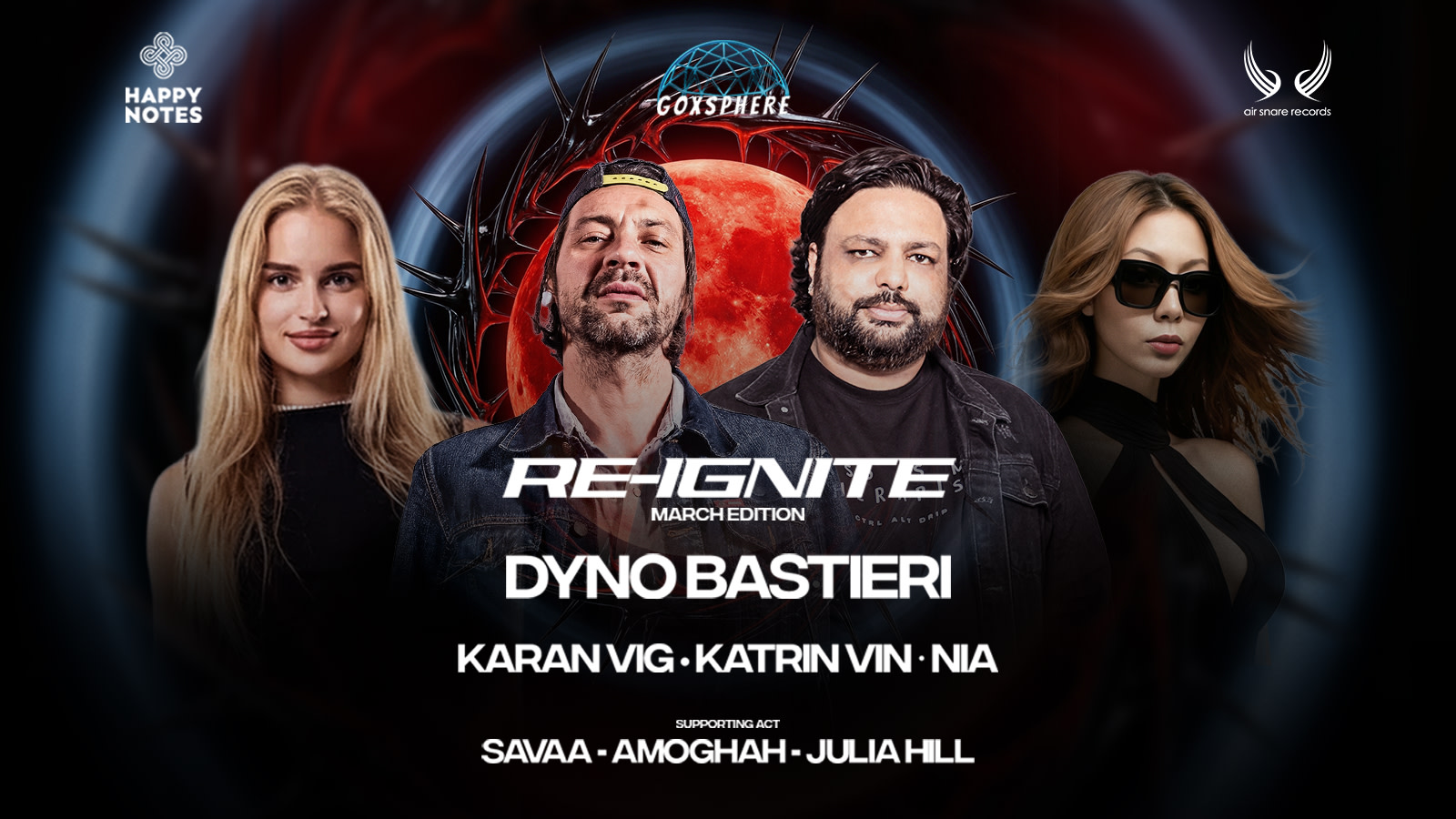 Goa's nightlife is about to reach a whole new level with Happy Notes and Air Snare Musi,is proud to bring you RE-IGNITE: March Edition — an epic night of avant grade Tech sounds