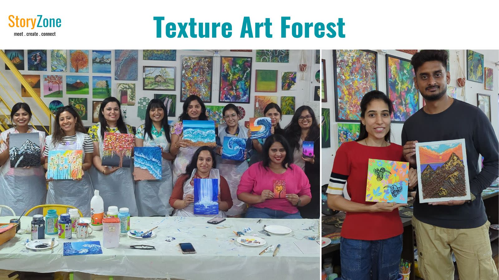 In texture art session we will be learning about basics of texture painting - we will create our own texture paint mix, understand application of the same, texturing methods and finally create a texture art on canvas board.