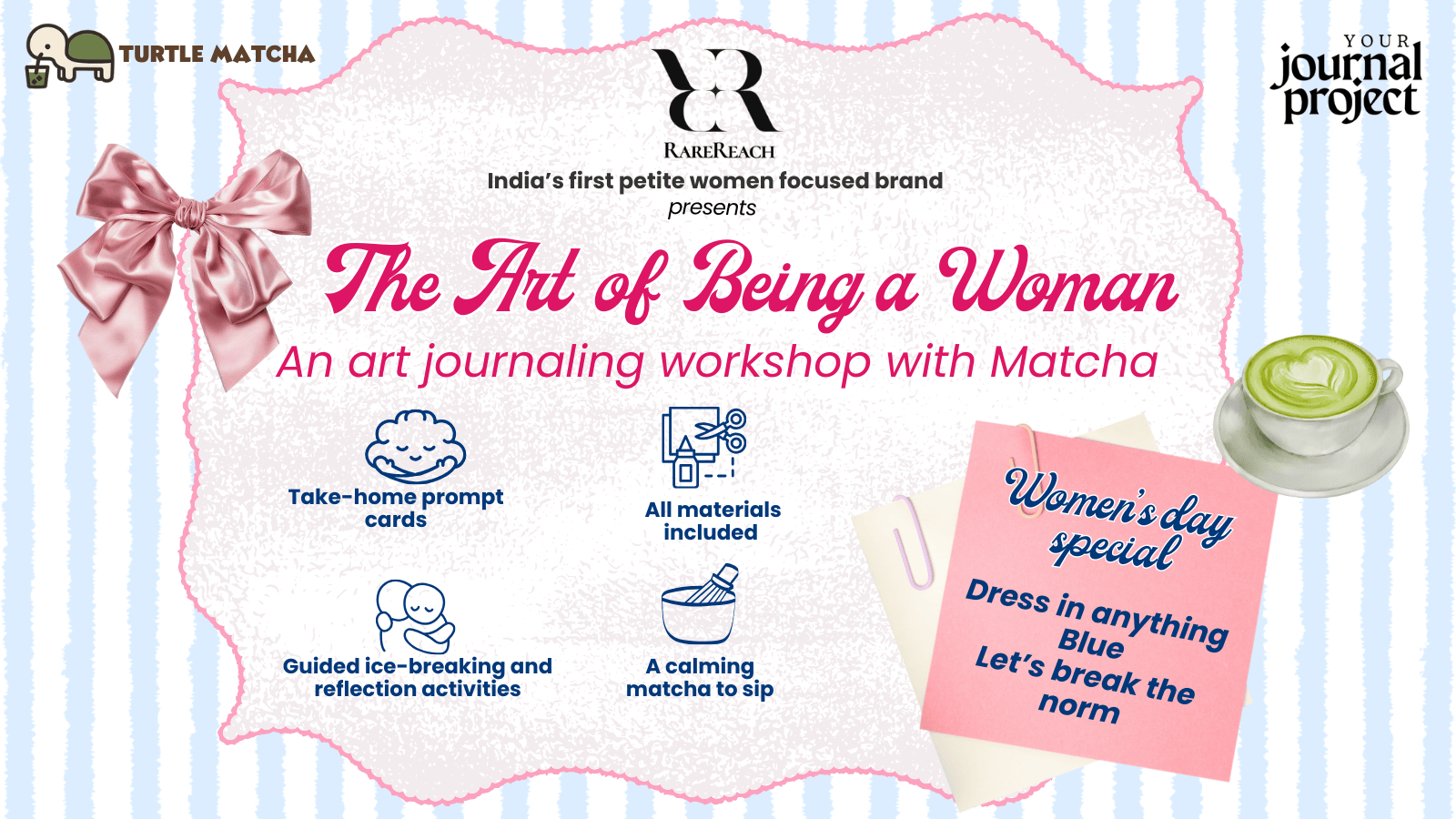 This Women’s Day, we gather to pause, reflect, and create pages that hold our stories, emotions, memories, and becoming. Through gentle art journaling prompts, quiet creative time, and heartfelt conversations, this space is designed to help you reconnect with yourself, the soft parts, the strong parts, and everything in between.