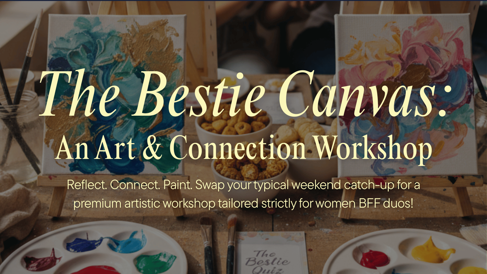 Forget the usual cafe catch-up. Swap your weekend routine for a premium, curated art date designed exclusively for women duos! Whether it’s your best friend, sister, or mother, 'The Bestie Canvas' offers an exclusive experience by Psychologist Ms Disha Manchekar, where you don’t just paint—you explore your friendship and connect deeper.