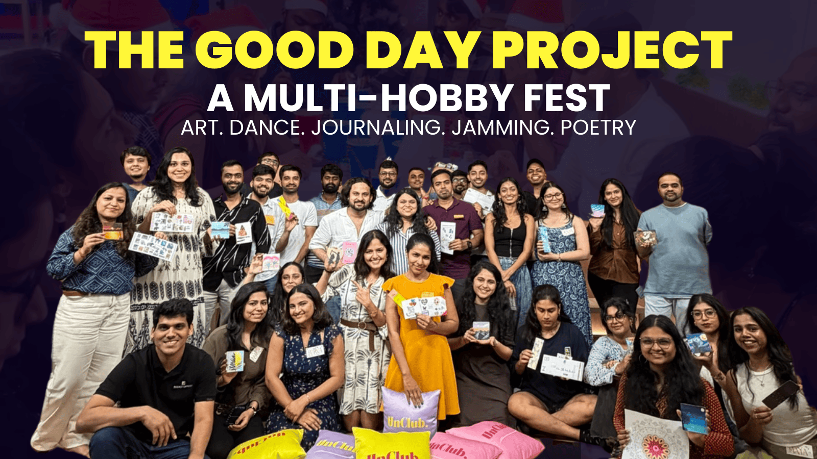 The Good Day Project is a 6 hour long experience in Bengaluru for adults looking for fun, meaningful things to do over the weekend. It brings together people who enjoy art, journaling, dance, music, and conversations — all in one warm, welcoming space designed for connection and creativity.