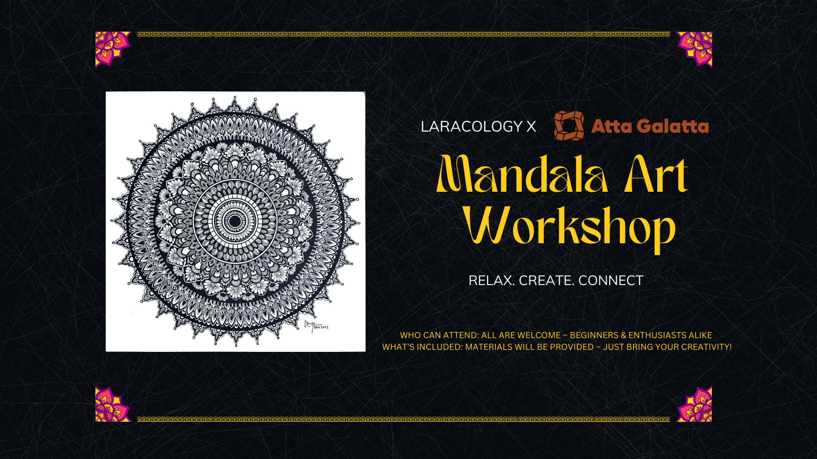 Step away from the daily rush and immerse yourself in the calming art of mandalas. This isn’t just a class – it’s a space to relax, express yourself, and connect with like-minded people. Whether you’re a beginner or a creative enthusiast, this workshop offers a chance to unwind, focus, and share the experience with others.