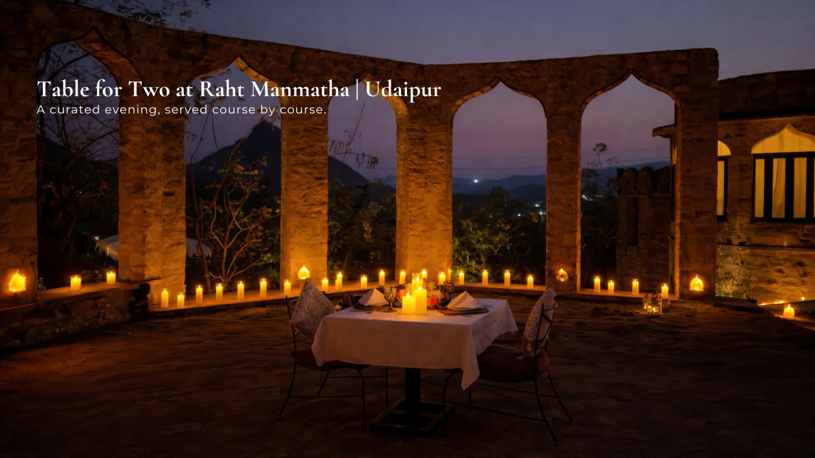 The Table for Two is an intimate seven-course gastronomic experience, thoughtfully curated for a private evening — where each course unfolds slowly under soft light and open skies.