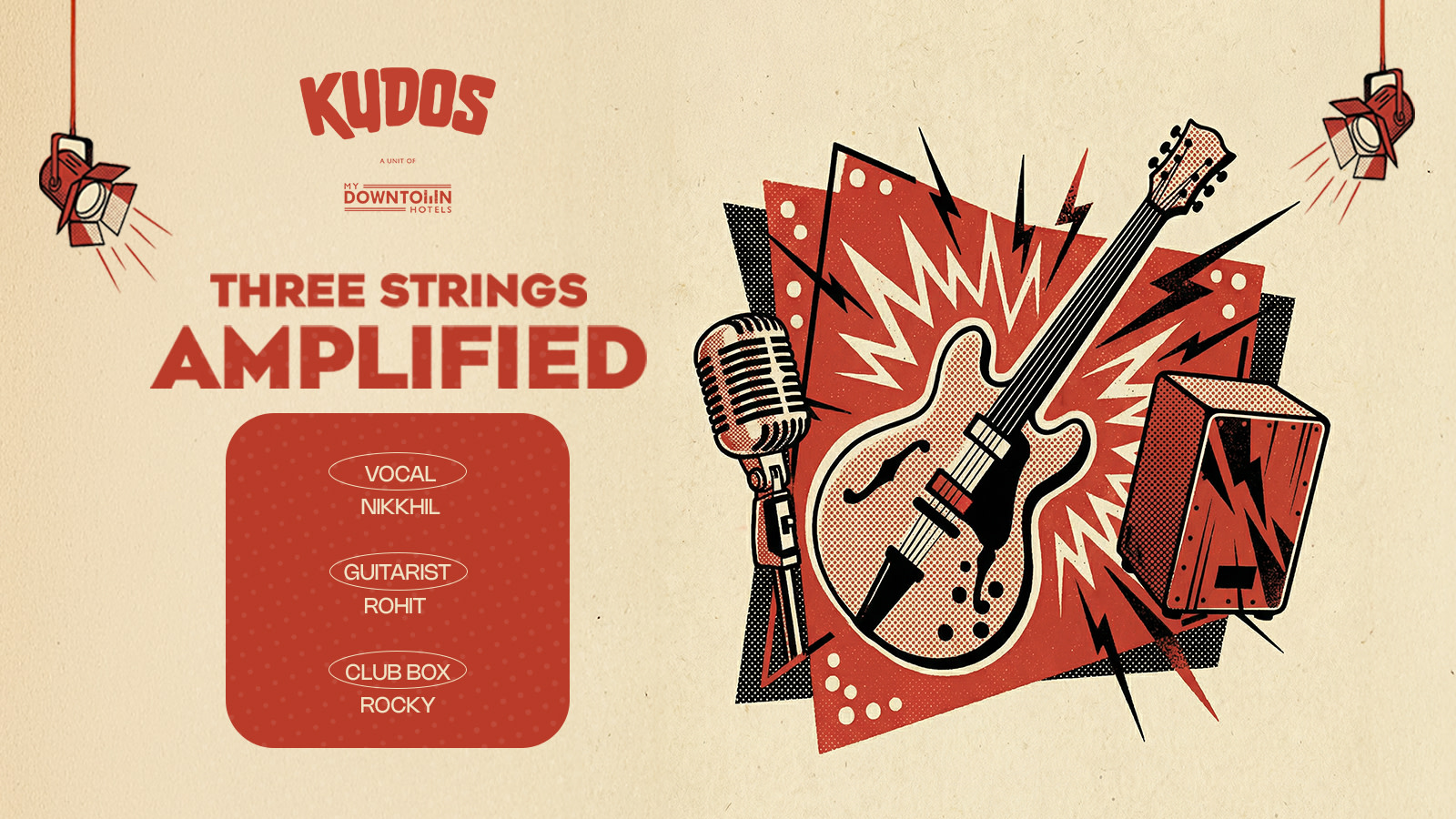 Three Strings Amplified brings an elevated live music experience to one of the city’s most scenic rooftop settings. Set against the panoramic Udaipur skyline, this evening blends refined ambience, live Bollywood and retro favourites, and a premium food & drinks experience.