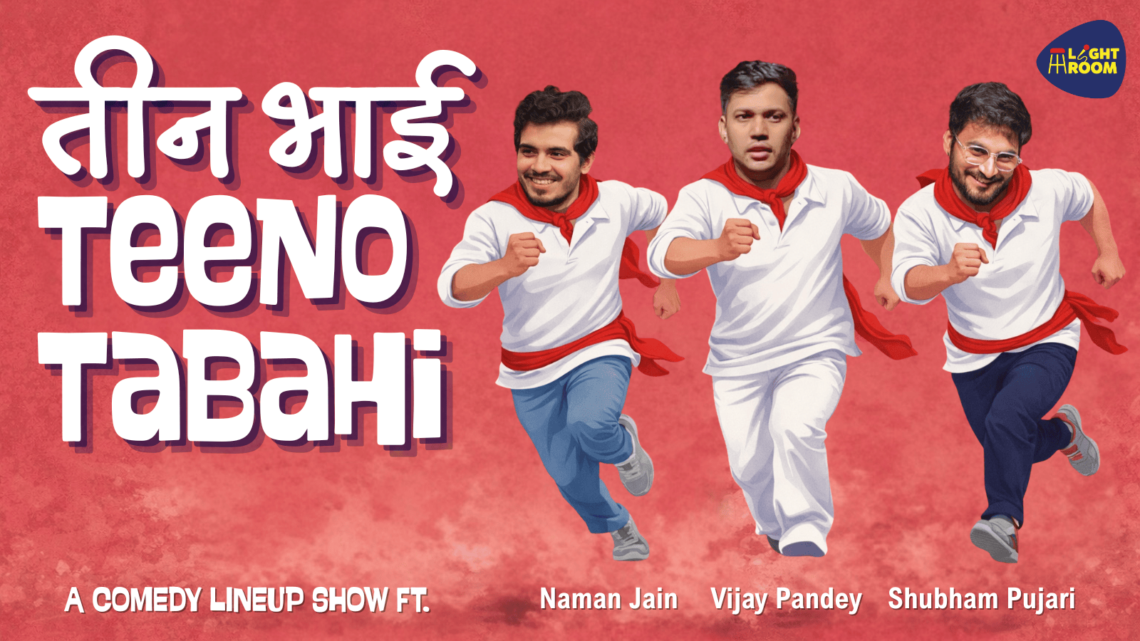 Catch Naman, Vijay Pandey, and Shubham Pujari live at Lightroom for a show packed with sharp observations, gut-wrenching humour, and nonstop laughter.