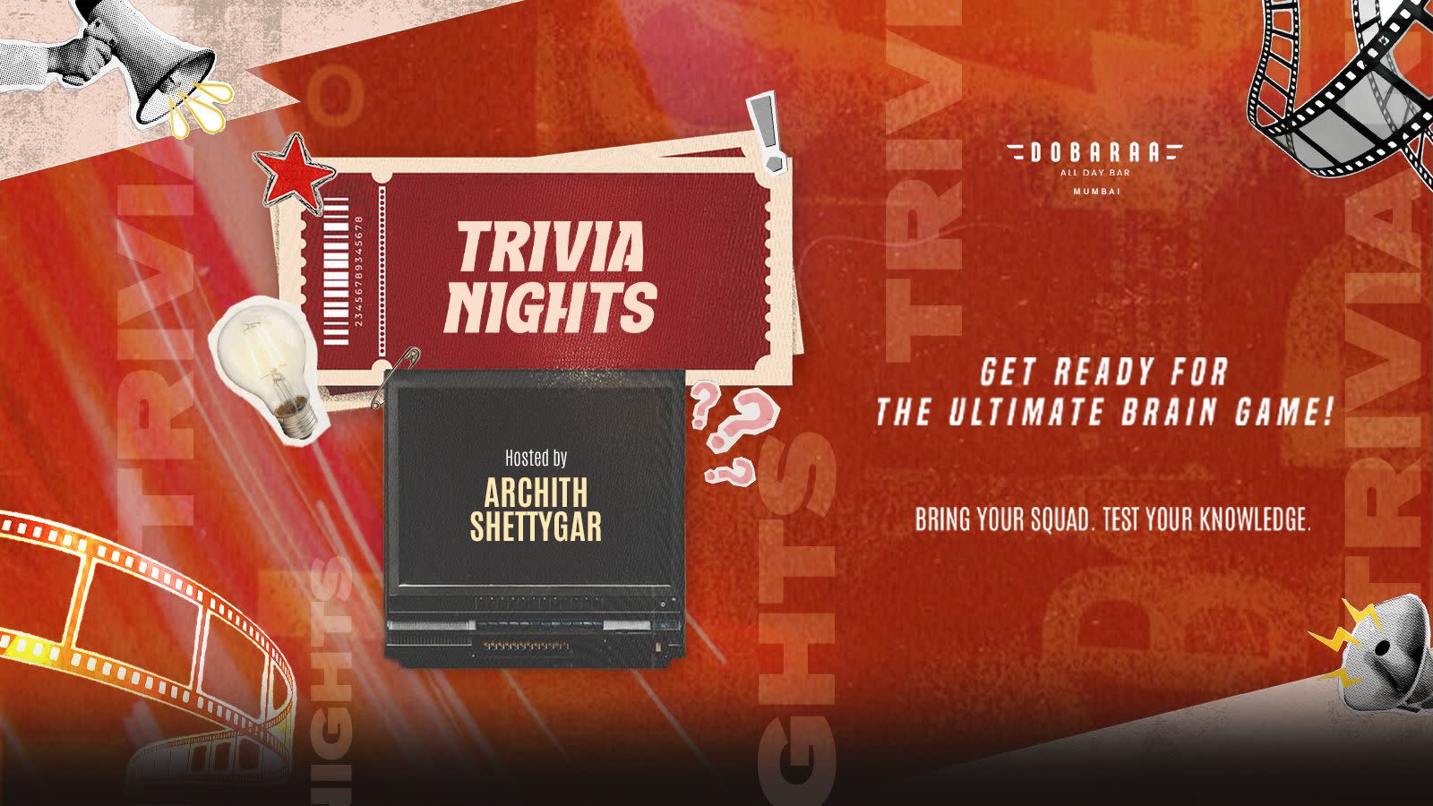 Hosted by Archit Shettygar, the night promises engaging trivia rounds that will challenge your pop culture knowledge, general awareness, and quick wit. Whether you’re a hardcore quizzer or just in it for the laughs, Trivia Nights at Dobaraa are designed for everyone.