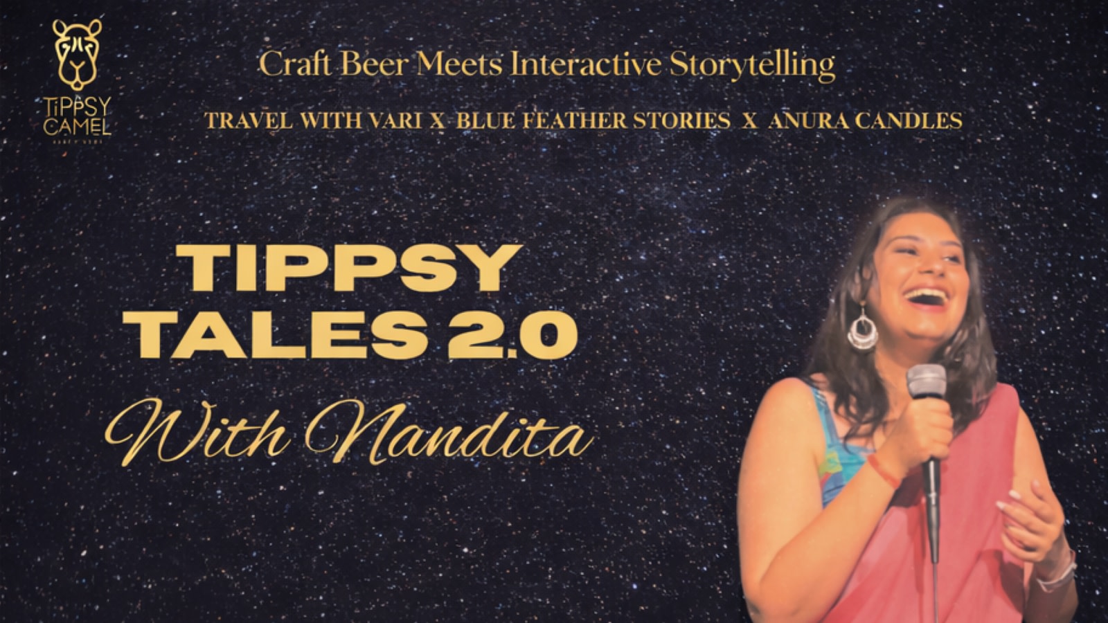 Tipsy Tales is a unique, immersive storytelling experience hosted at Tipsy Camel Brewers, Rajasthan's finest craft brewery. It combines craft beer culture with interactive narrative sessions led by Nandita. The event aims to create an engaging, social, and creative atmosphere for participants.