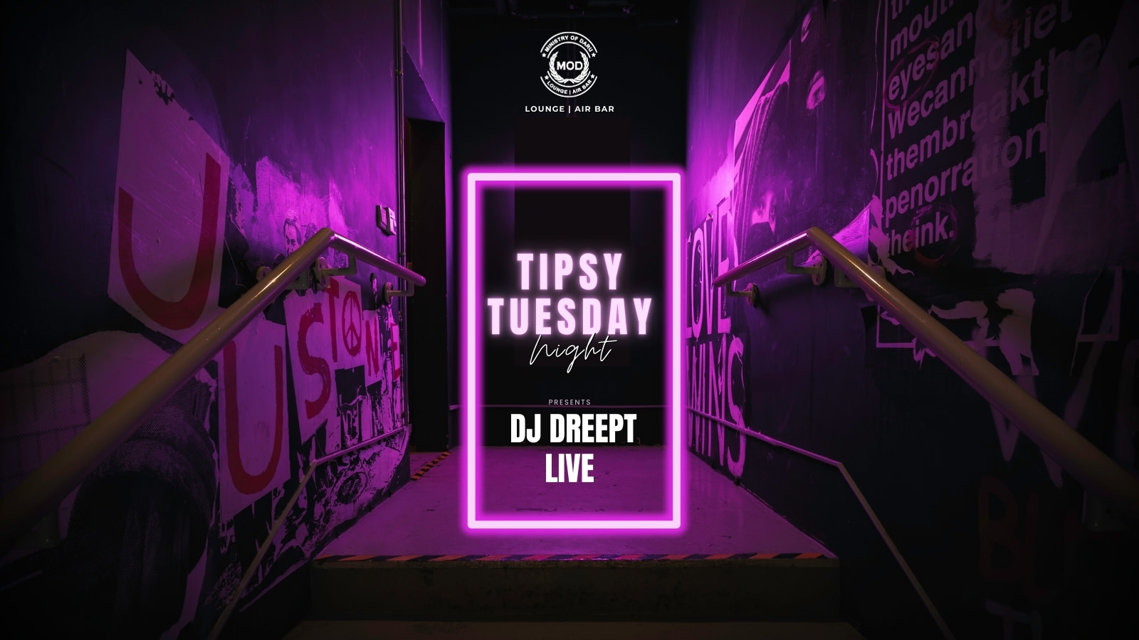 Tuesdays don’t have to be boring! Come have fun at Ministry of Daru for Tipsy Tuesday with DJ Dreept live. Great music, good vibes, and dancing all night long!