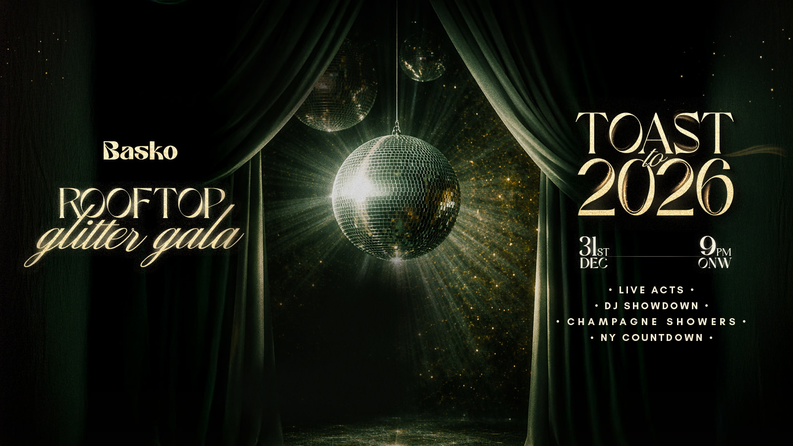 Ring in the New Year in signature Basko style as we host an unforgettable Rooftop Glitter Gala to welcome 2026.