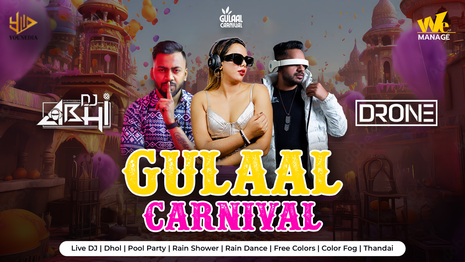 This Holi, itโs all about fun, colors, and memories! Don't miss out on the ultimate Gulaal Carnival โ where the party never stops!