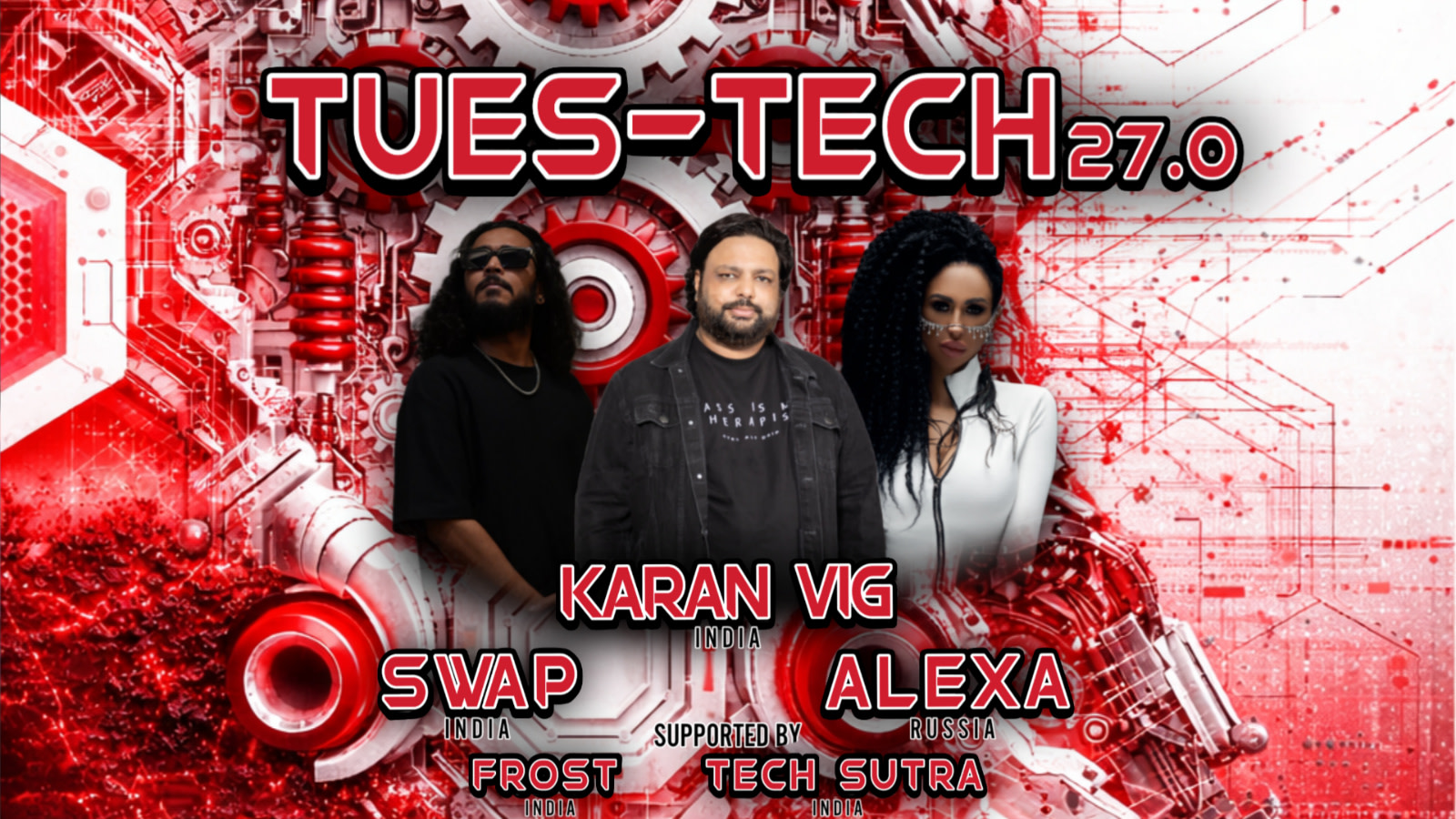 Holding down the support slots are Frost (India) and Tech Sutra (India), keeping the warm-up exactly where it needs to be — deep, focused, and relentless.