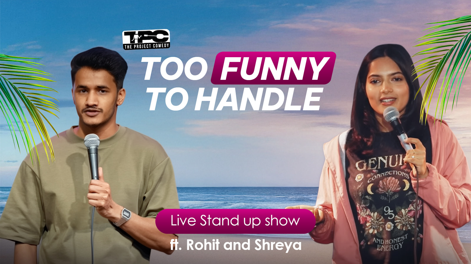 Catch Rohit Singh and Shreya Priyam in their duo showcase “Too Funny to Handle”, a fast-paced stand-up comedy hour packed with sharp observations, personal stories, and spontaneous crowd interactions. The two bring contrasting perspectives and fresh material, making every minute unpredictable and entertaining.