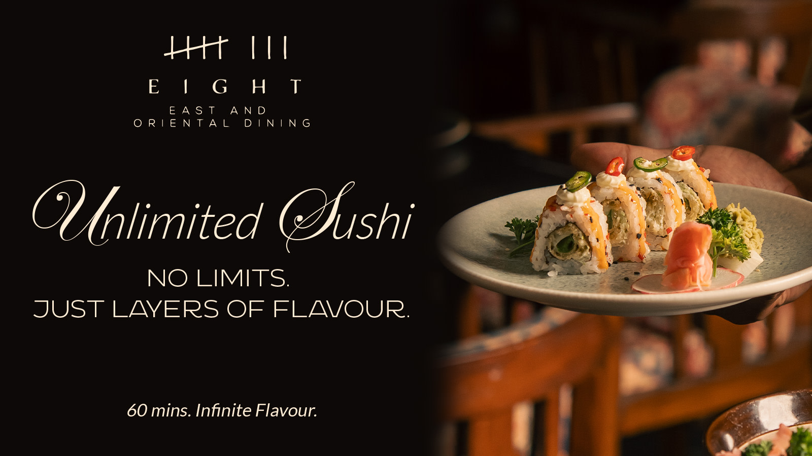 By popular demand, our much-loved Unlimited Sushi experience returns to Eight. Indulge in an endless selection of handcrafted sushi, made fresh and served with finesse.