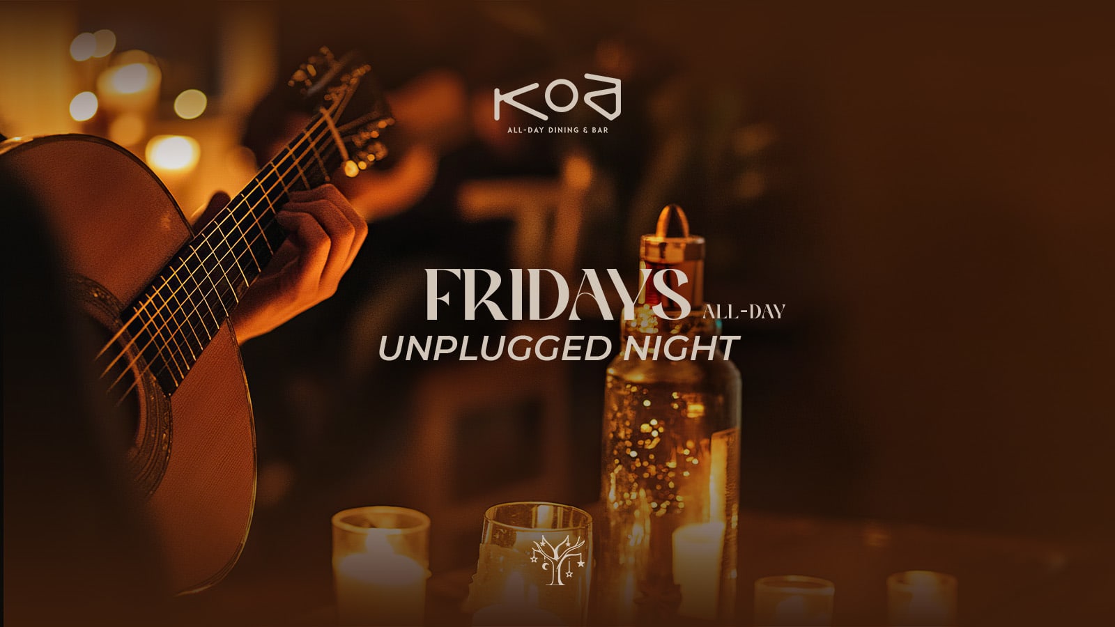 Fridays bring you live unplugged music paired with 50% off on select drinks, all day long- the perfect mix of laid back vibes and just enough energy to kick things off.