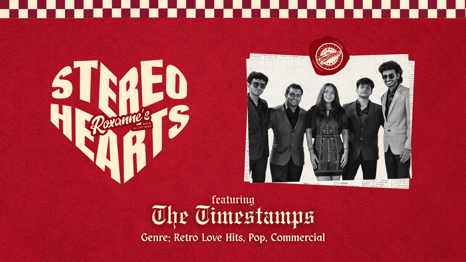 Get ready for a night of feel-good nostalgia as Timestamps take over Roxanne’s Bar & All Day Diner. Expect retro love hits, pop favourites, and commercial crowd-pleasers that keep the energy high and the singalongs louder. It’s the perfect mix of romance, rhythm, and Roxanne’s signature dinner-and-drinks vibe - come for the music, stay for the mood.