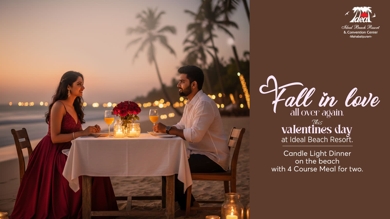 At Ideal Beach Resort, Mahabalipuram, we invite you to celebrate love in its most beautiful form — with waves as your soundtrack and candlelight setting the mood.