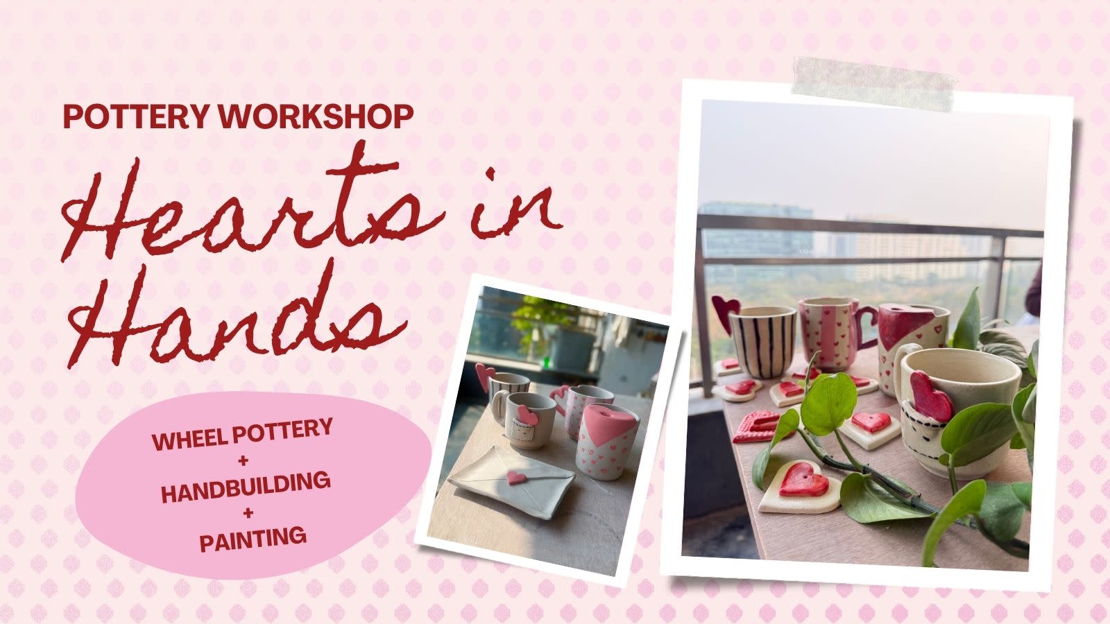 Hearts In Hand is a 2-hour pottery workshop focused on hands-on creation and creative expression.