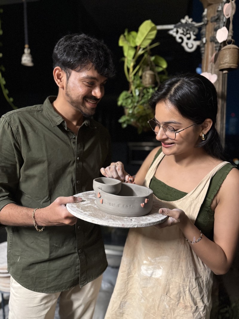 Participants work with clay through a combination of wheel pottery and hand-building, creating a piece of their choice. The session also includes painting with underglaze colours, allowing participants to personalise their work.