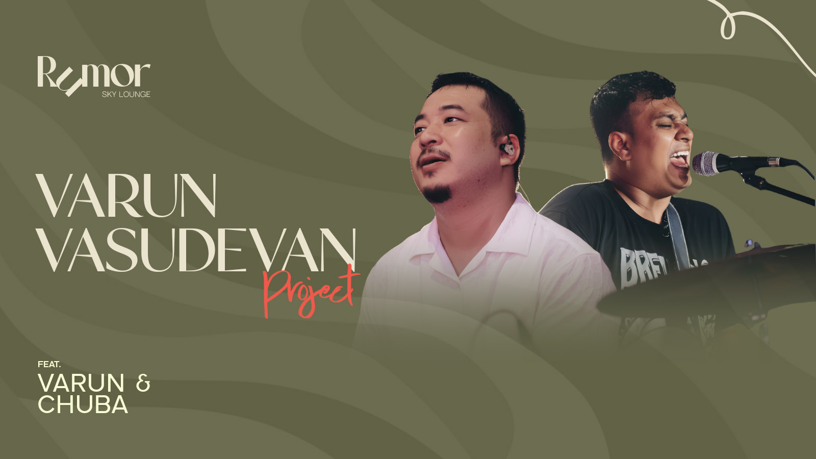Get ready for an unforgettable night as Varun and Chuba take over Rumor Sky Lounge with a high-energy live performance. Experience Varun Vasudevan's signature sound and electrifying stage presence as they deliver a mix of crowd favorites and soulful hits. Set against the stunning rooftop vibe, the night blends great music, premium drinks, and an unbeatable atmosphere. Let the rhythm take over as you sing along and vibe with fellow music lovers. Gather your crew and make it a night to remember with live music, energy, and sky-high vibes.