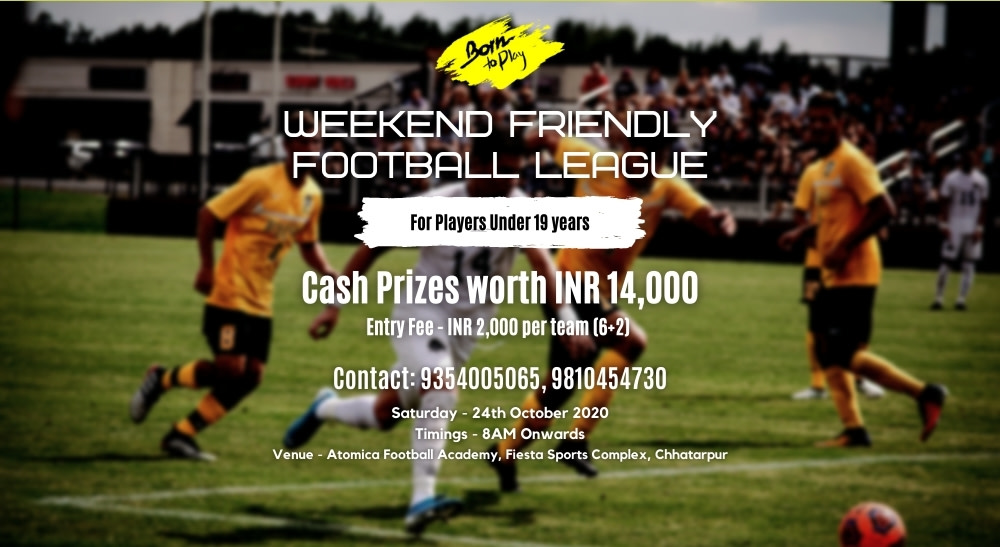 Born To Play is pleased to invite you to the 1st Under-19 Weekend Friendly Football League to be held at Atomica Football Academy, Fiesta Sports Complex, Chhatarpur, on 24th of October, 2020.