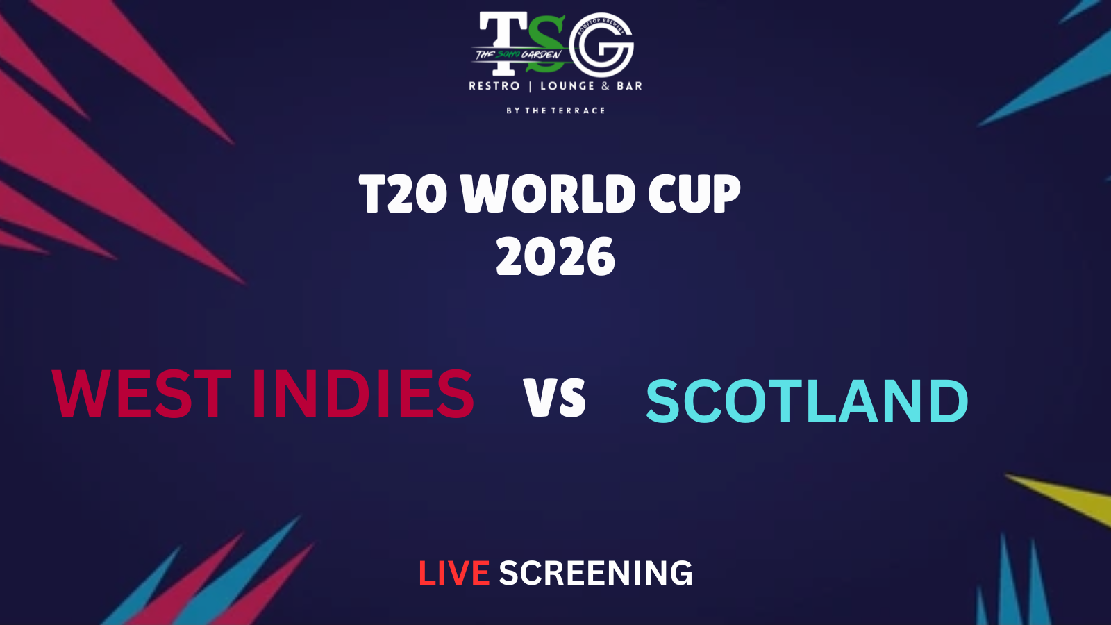 West Indies vs Scotland – T20 World Cup 2026 Live Screening at The Soho Garden