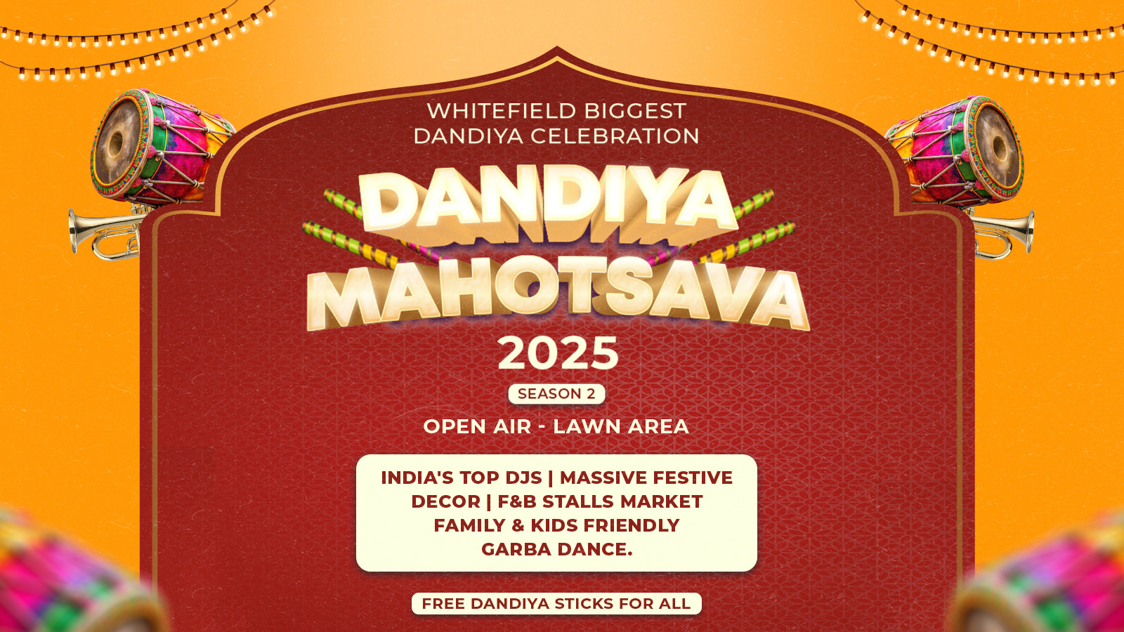 🌟✨ After back to back hit Dandiya shows in Whitefield at different star hotels , we are back once again! Get ready for the ultimate Whitefield Biggest Dandiya Mahotsava Season 2 Extravaganza! ✨🌟