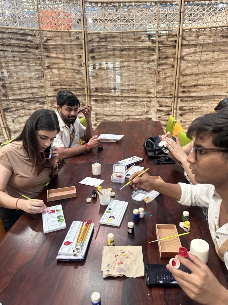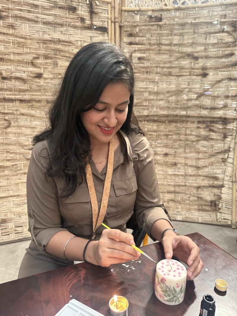 • Decorate two soy wax candles by Pravaah using wax and dried florals