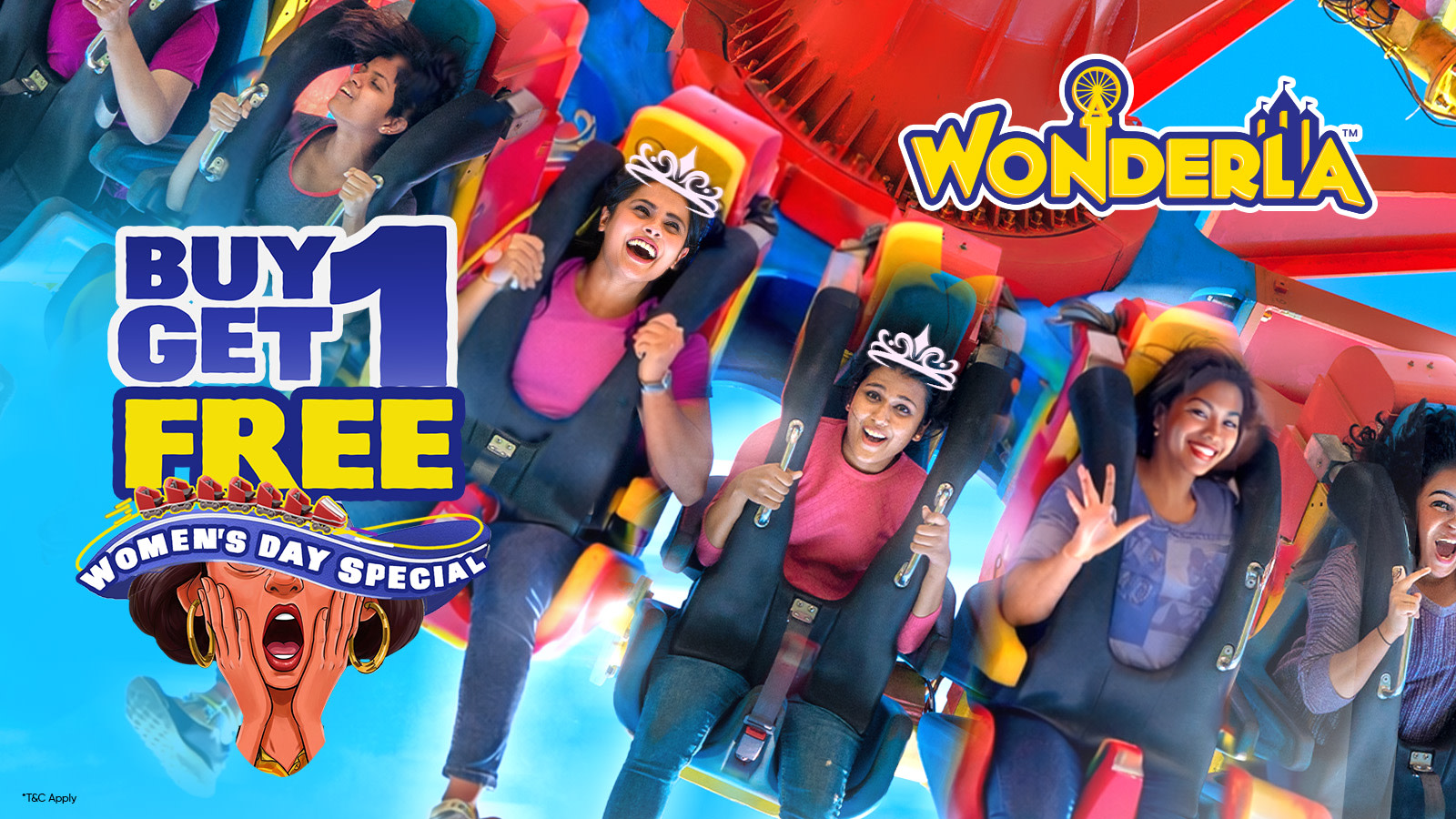 To make the celebration even more special, Wonderla offers a Buy 1 Get 1 Free ticket deal, encouraging women to bring along their friends, sisters, mothers, or colleagues and double the fun.