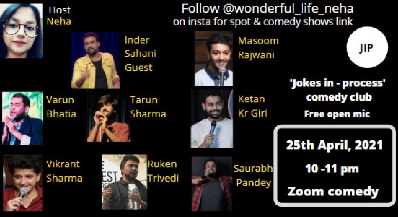 -Please follow wonderful_life_neha on instagram for spot and free audience link for the comedy shows.