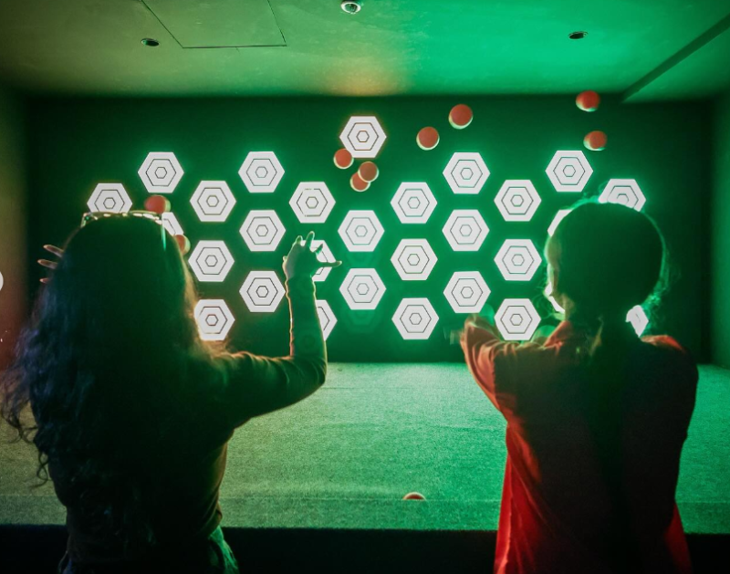 Arena—Arena gets a high-tech upgrade in this daring game room. Your team's mission: hit the glowing hexagon targets with precision. Don't hesitate—nail the bullseye quickly, or your team will be out of the game.