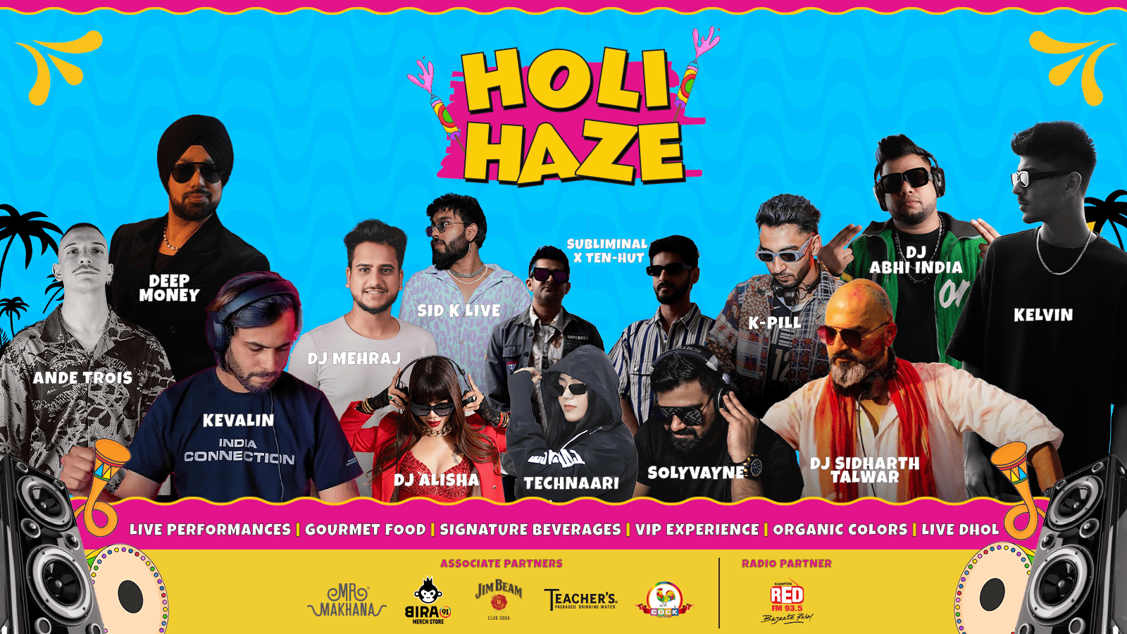 The music lineup is crazier than ever, with the first half of the day filled with Bollywood, Commercial, and Bolly-Techno beats by top DJs, setting the perfect mood for Holi revelry. Adding to the excitement, there will be live performances, including the sensational Deep Money, known for his hit track Dope Shope! As the evening sets in, the party transforms into a high-energy techno experience, featuring international and local DJs like DJ Andre Trois from Italy and Technaari, making it the ultimate sundowner event for electronic music lovers.